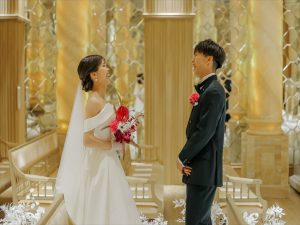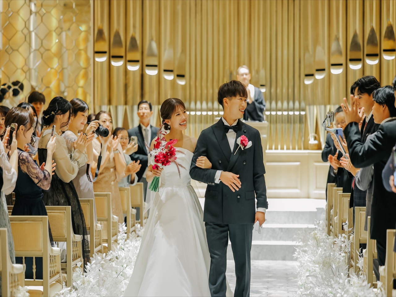 おふたりのたいせつな104名のゲストに見守られ挙式が進みます