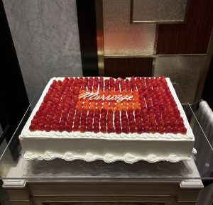 こちらは 沢山のいちごを綺麗に並べたウェディングケーキとなっており 数にしてなんと350個です!