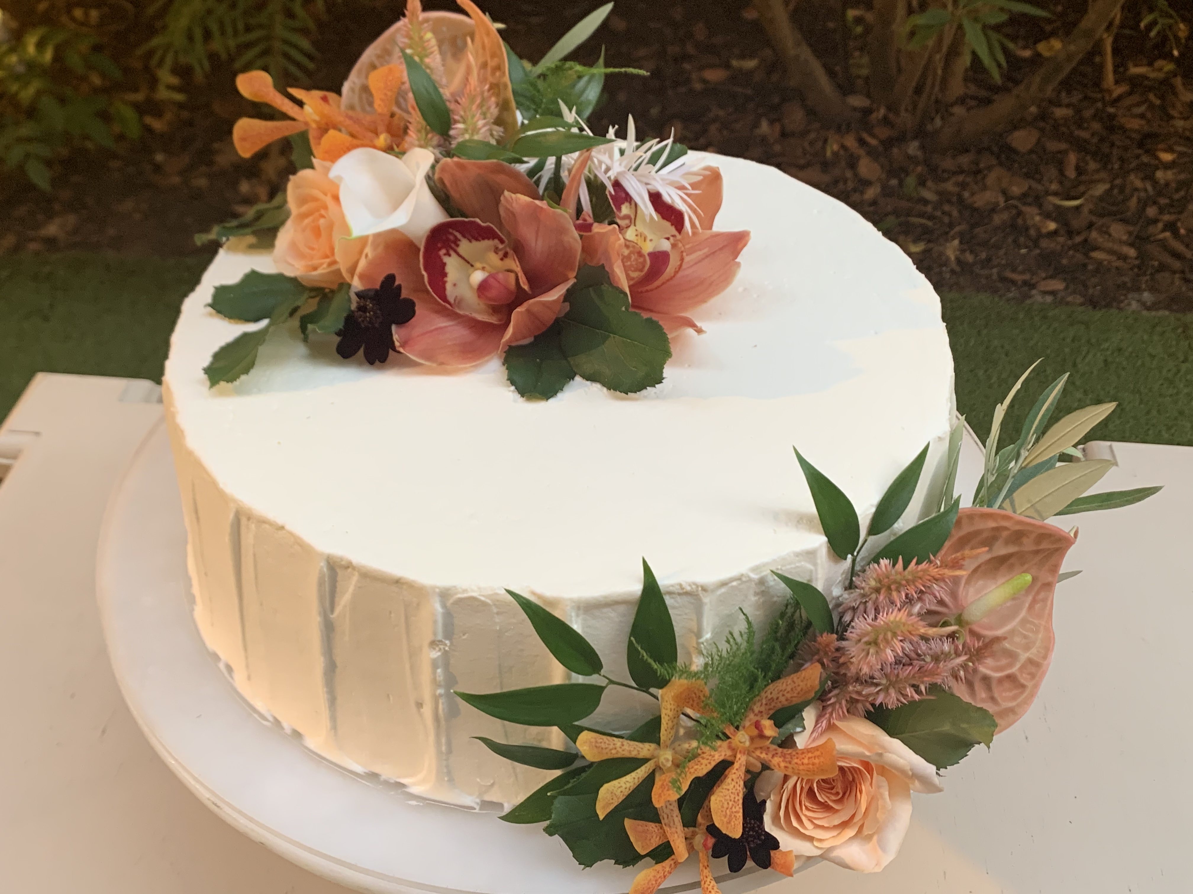生花を扱うことで ウェディングケーキにナチュラルな印象と