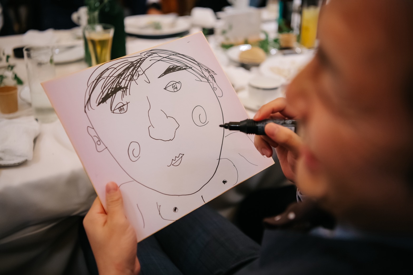 完成した似顔絵が次々とおふたりの手元に運ばれ