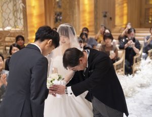 新婦父から新郎へのバトンパスでは