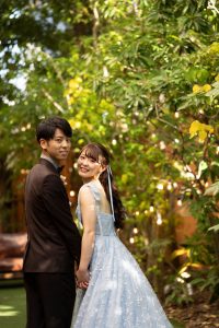 お色直しは 淡いブルーのカラードレスに
