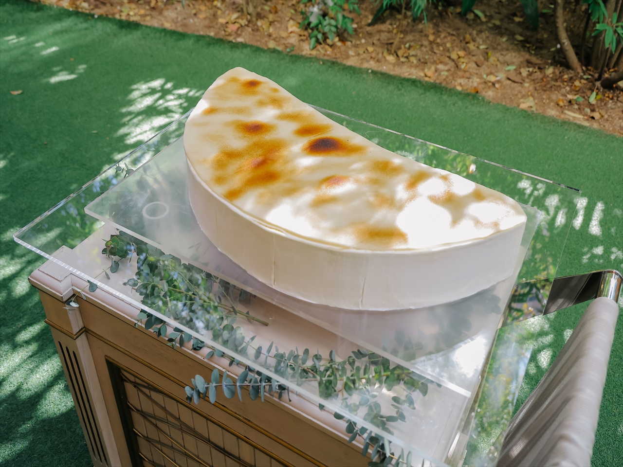 ケーキの側面をおふたりがあぶることによって