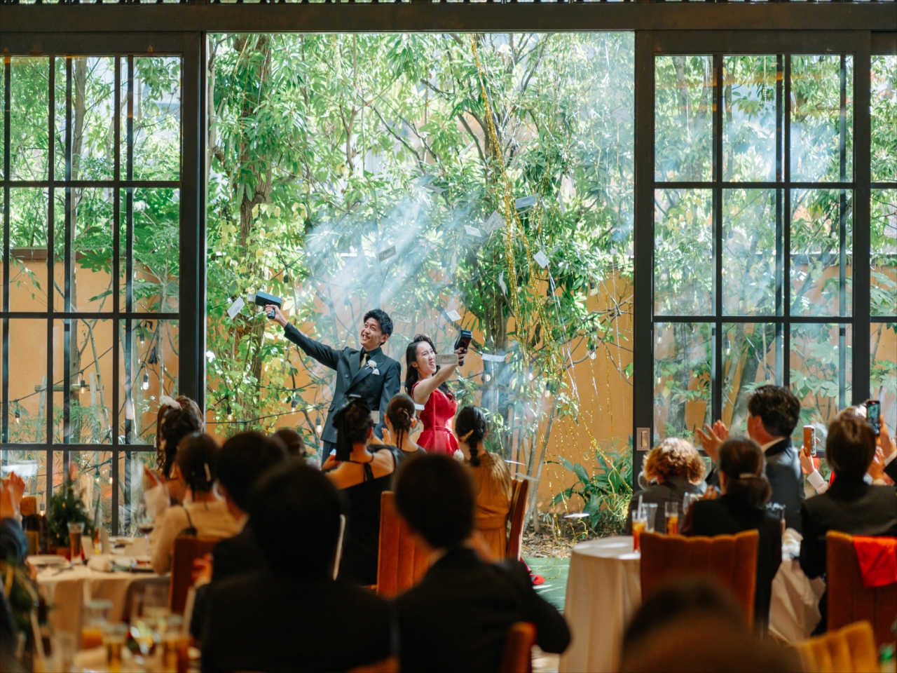 お待ちかねのおふたりのお色直し入場は会場横のガーデンから!